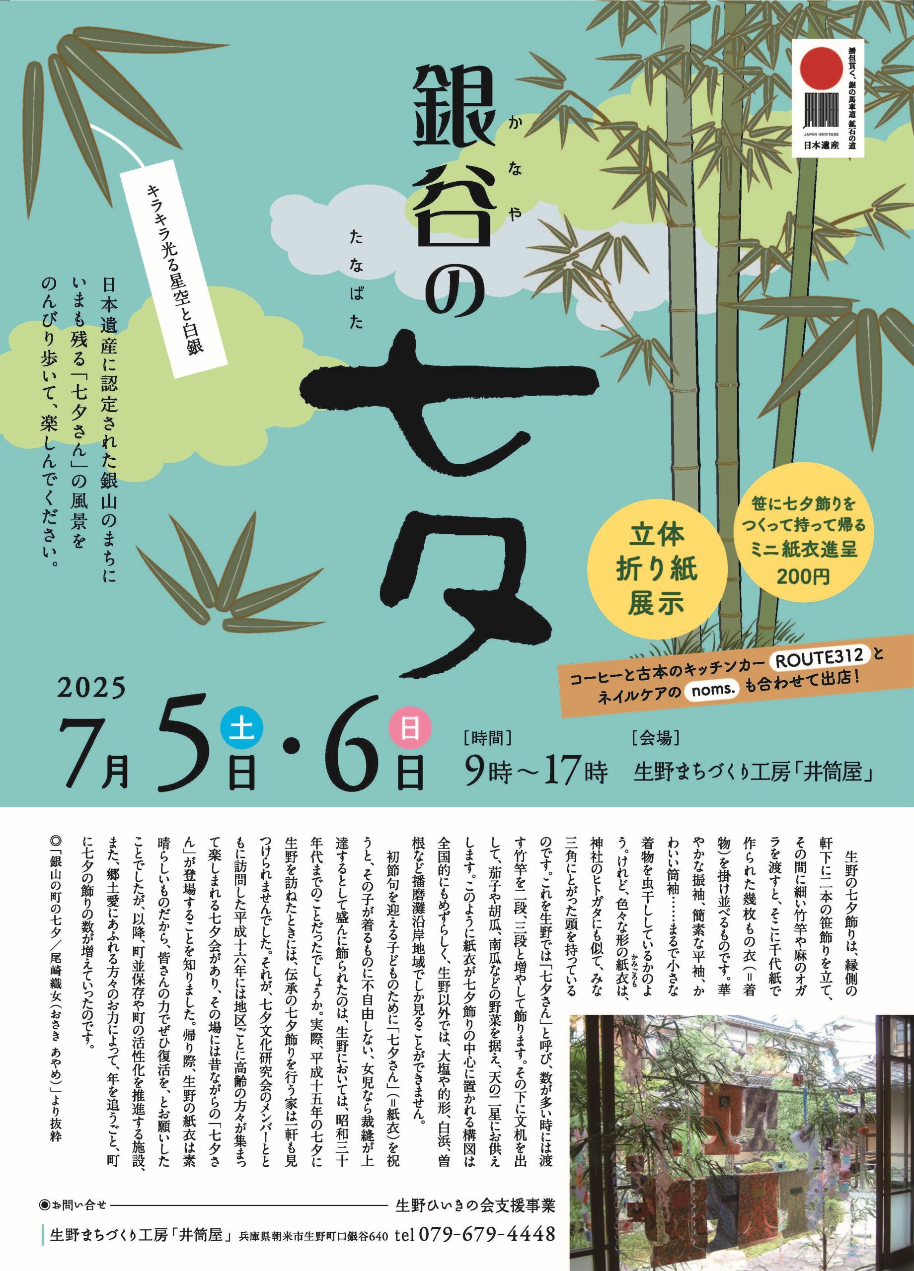 2025年も、生野まちづくり工房井筒屋にて「銀谷の七夕 in 井筒屋」を開催いたします!