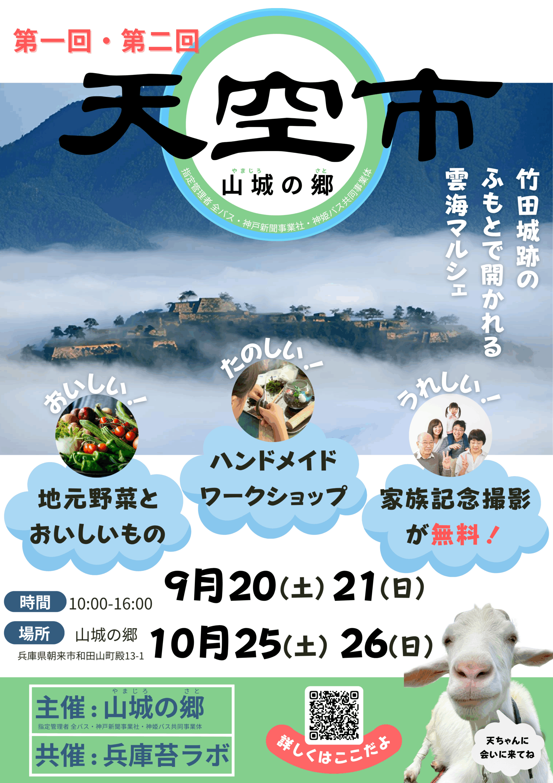山城の郷(兵庫県朝来市和田山町殿13-1) 天空市 公式サイト: https://peraichi.com/landing_pages/view/takeda-marche/ |