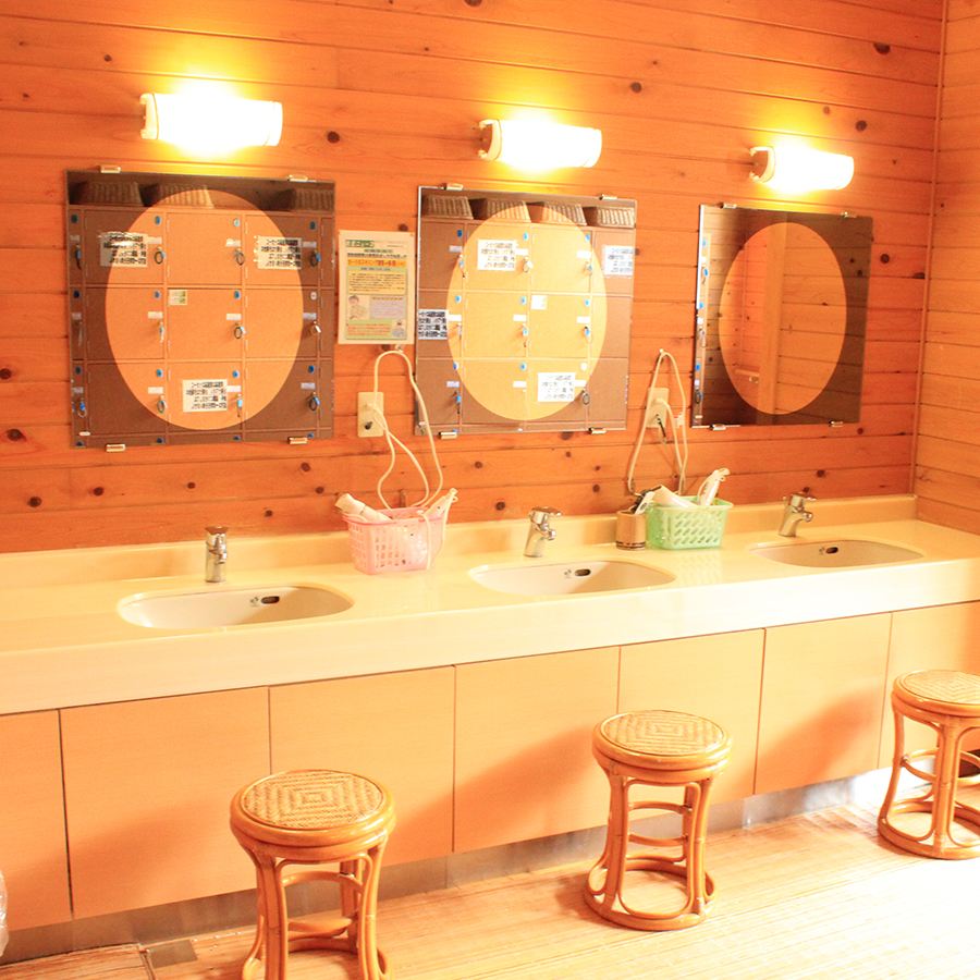 脱衣所(パウダールーム)は、ウッドの温もりに包まれた落ち着きのある空間が広がり、心地よくお過ごしいただけます。洗練されたデザインと清潔感を大切にし、リラックスしながら身支度を整えられる環境をご用意しております。鏡やアメニティも充実しており、快適で使いやすいパウダールームとなっています。