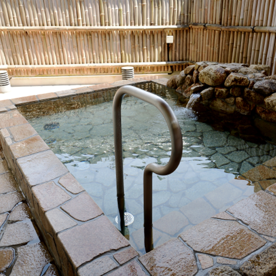 露天風呂も安全にご利用いただけるよう、滑りに配慮した手すりを設置しておりますので、どなたでも安心してご入浴いただけます。