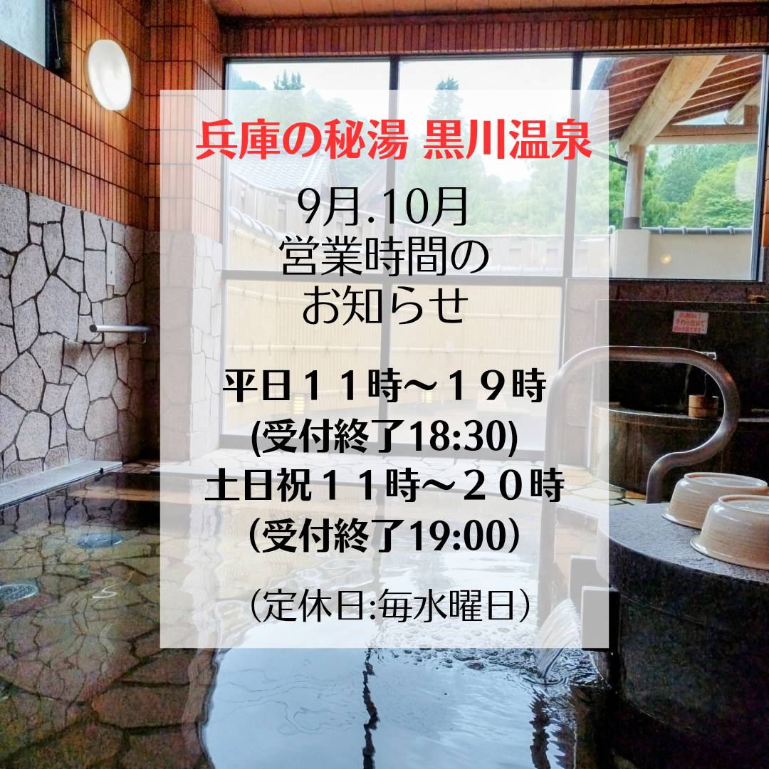 9月・10月の営業時間について、下記の通りご案内いたします。