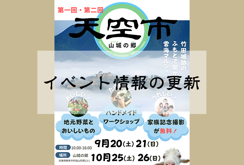 竹田城跡を望む絶景のロケーション「山城の郷」で、秋の特別マルシェ「天空市」を開催します。